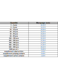 Goodies personnalisés : Faites la promotion de votre marque avec des goodies entièrement personnalisables ! Que ce soit des stylos, mugs, t-shirts, ou porte-clés, nous proposons une large gamme de produits promotionnels adaptés à tous vos besoins. Nos techniques de personnalisation, incluant le full printing, garantissent des impressions haute qualité et des designs uniques. Offrir des objets publicitaires personnalisés renforce la visibilité de votre entreprise et fidélise vos clients. Idéal pour événements, cadeaux d'entreprise et campagnes marketing. Créez des goodies à l’image de votre marque dès aujourd’hui !